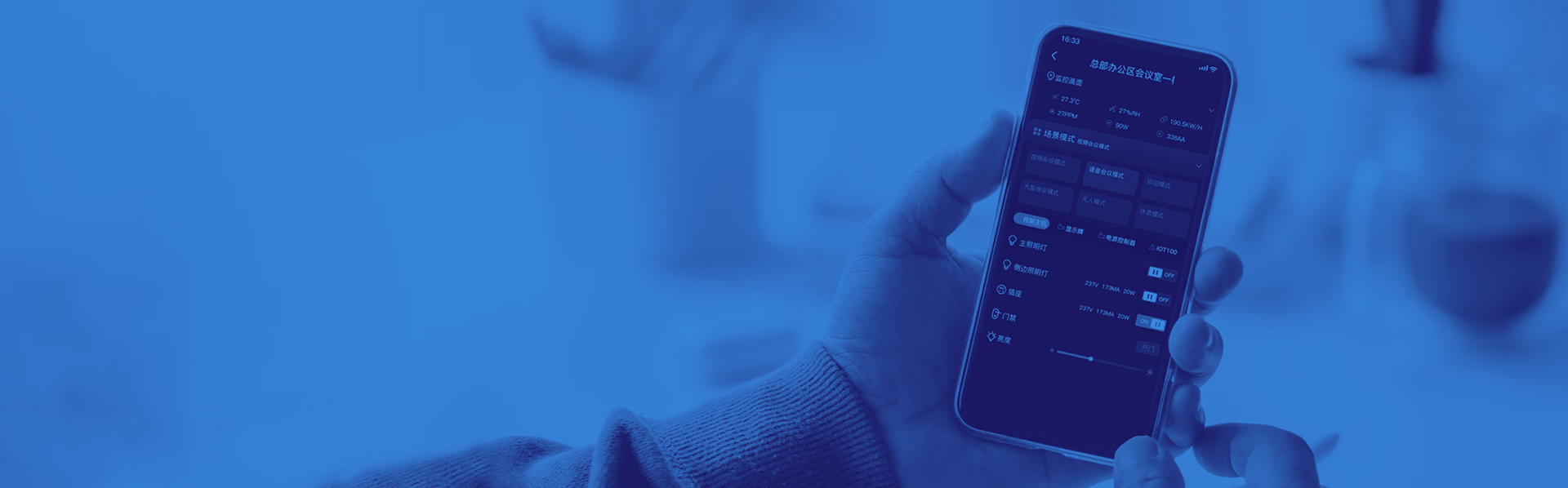会议室远程智能控制,灯光/空调/窗帘/雾化玻璃一键管控,多种情景模式一键可调,轻松节省会议能耗资源,高效化管理。